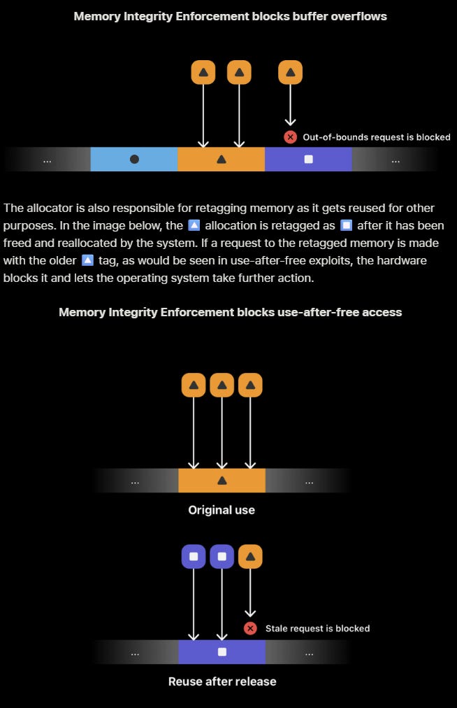 Enter MIE: Memory Integrity Enforcement, the result of five years of research based on ARM’s Memory Tagging Extension (MTE) technology, heavily modified for iPhone hardware.