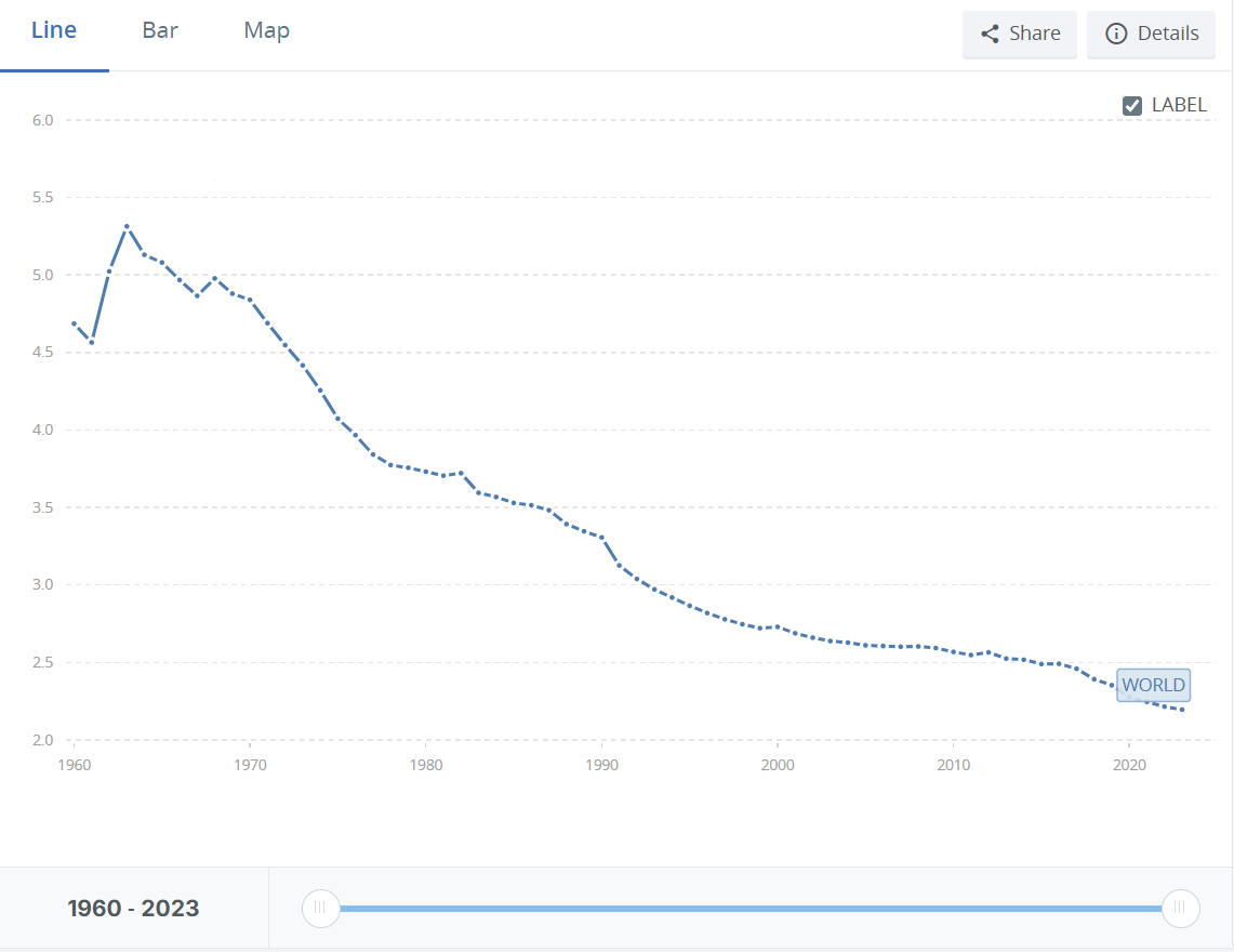 From a purely economic standpoint, the world is running out of workers. Not in absolute terms, not yet, but in the places and sectors where it counts most. South Korea now has a fertility rate of 0.7 children per woman. For context, a population needs 2.1 to stay flat. 0.7 is not a decline. It is a collapse without precedent in modern human history (World Bank, 2024).