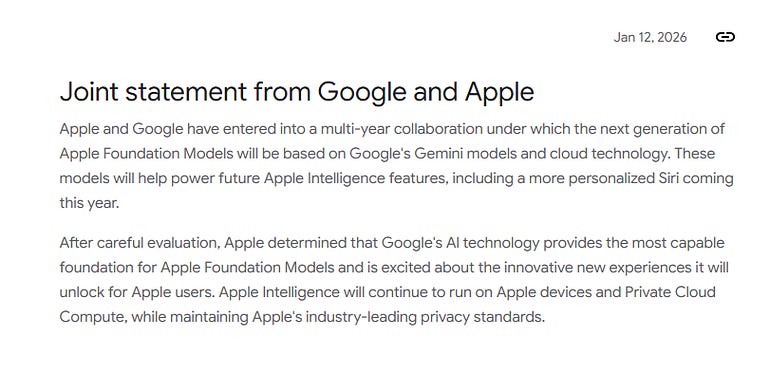 Translation: Google just became the brain powering Siri, not OpenAI.